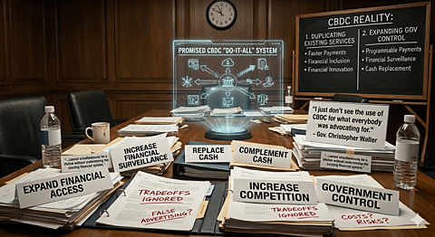 It’s not often that I commend central bankers, but Waller is spot on. A CBDC can’t do everything, everywhere, all at once. In fact, what little it can do seems to fall into just two categories: duplicating existing services (e.g., faster payments, financial inclusion, and financial innovation) and expanding government control (e.g., payment programmability, financial surveillance, and cash replacement). If that’s the best that officials can come up with, CBDCs should be rejected.